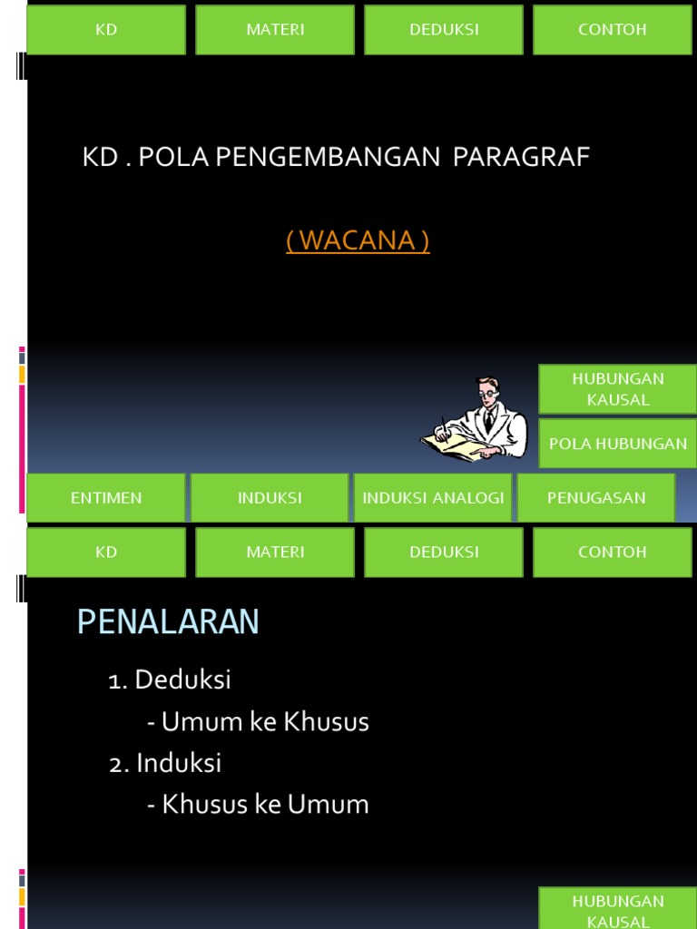 Paragraf adalah rangkaian kalimat yang saling memiliki keterkaitan dan membentuk kesatuan gagasan yang terdiri dari ide pokok dan kalimat penjelas. Penalaran adalah proses berpikir yang bertolak dari pengamatan indera (pengamatan empirik) yang menghasilkan sejumlah konsep dan pengertian. Homemapelbahasa indonesiaparagraf deduktif dan induktif: Ini membuat generalisasi dengan mengamati pola dan kesimpulan gambar yang mungkin salah. Apa alasan induktif adalah, contoh keterampilan penalaran induktif di tempat kerja, dan saran tentang termasuk keterampilan berpikir induktif dalam pencarian pekerjaan anda.